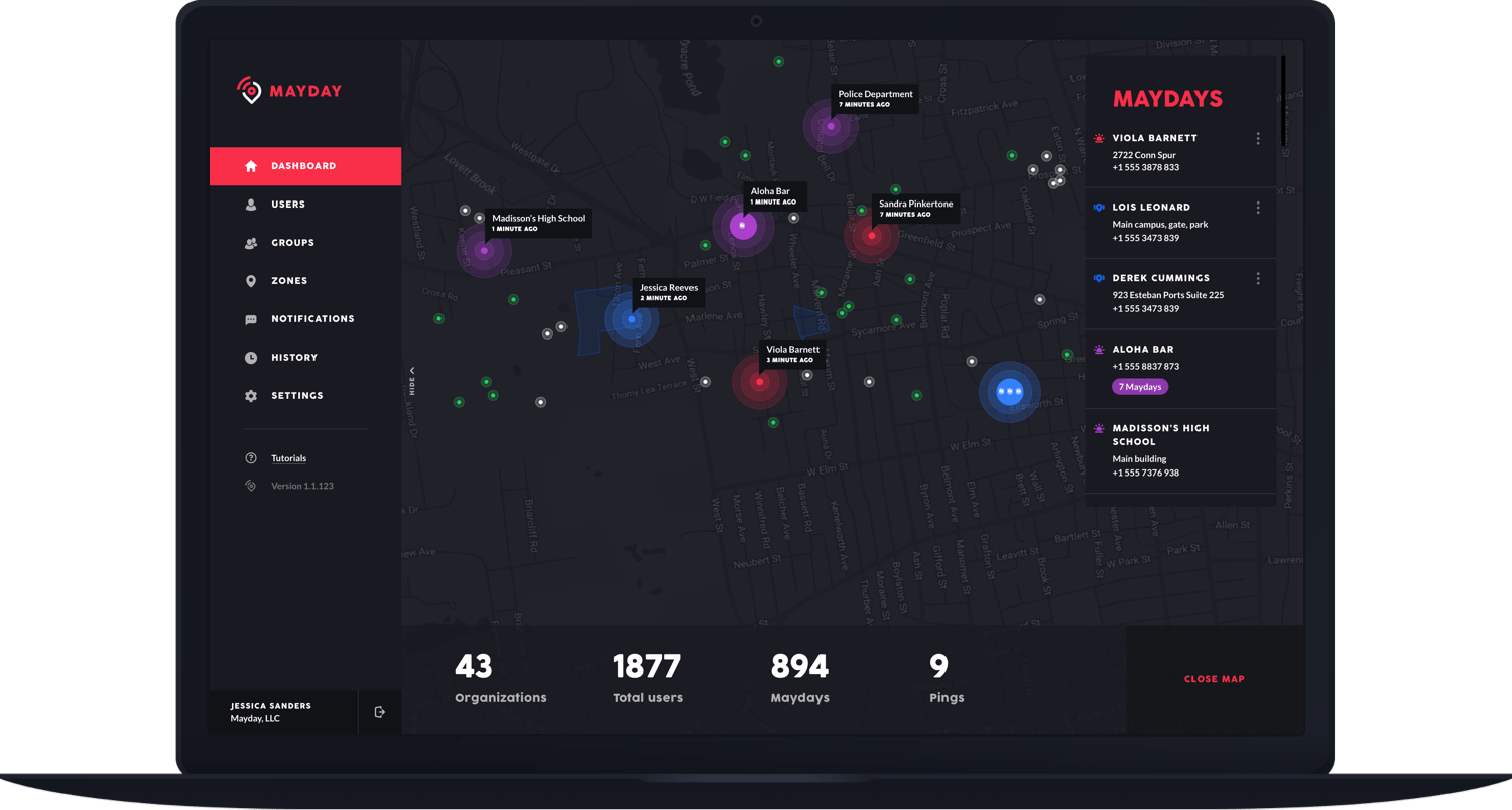 Mayday Safety approached Mercury Development to build a solution that would include mobile apps for personal usage, a web admin dashboard to manage organizations and a separate web tool for superadmins. Besides, Mayday Safety also aimed to provide a quick and easy way to reach out to families when all clear.