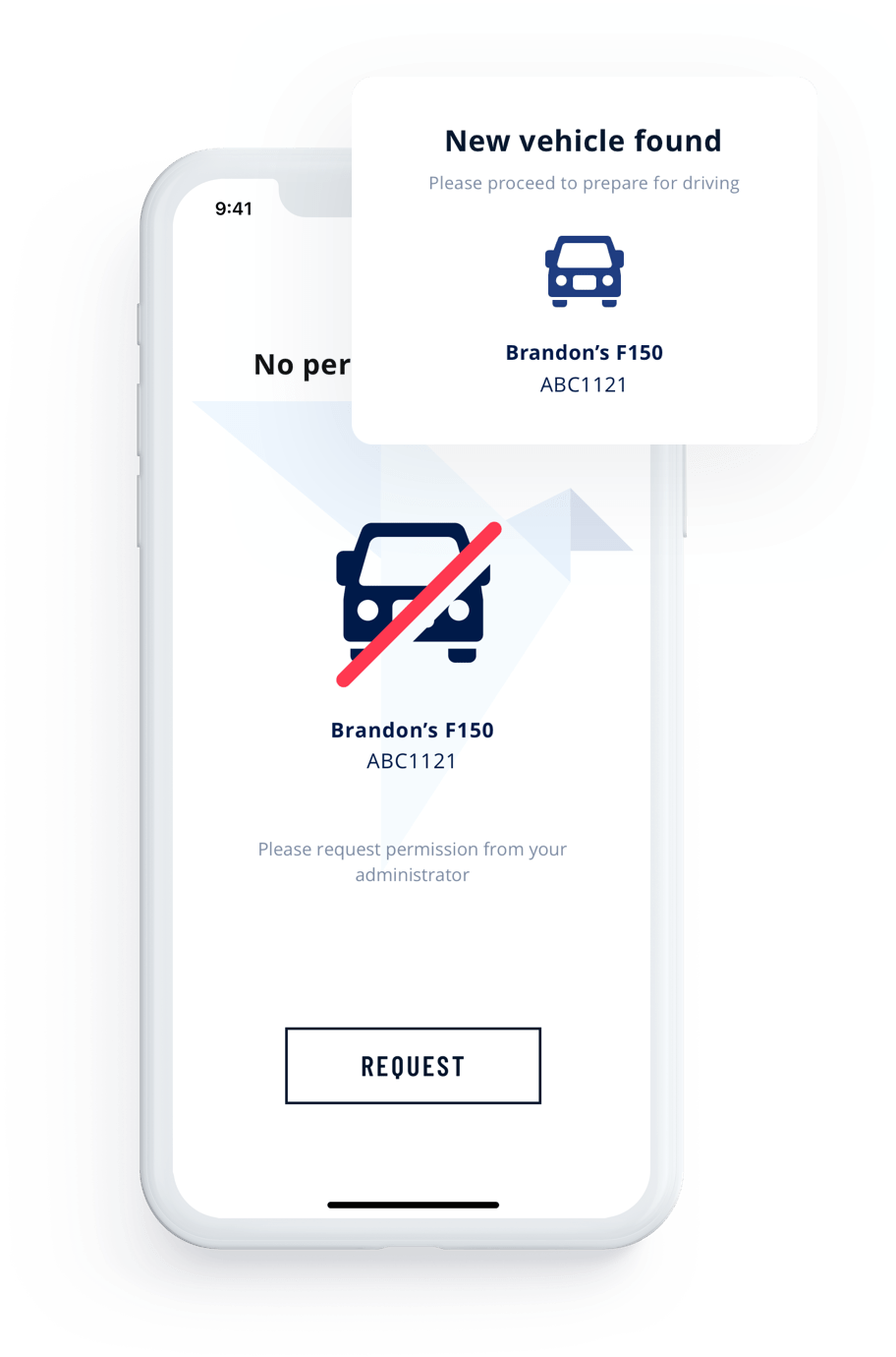 Identifies drivers assigned to vehicles and displays a dedicated interdictory screen if the permission is missing.