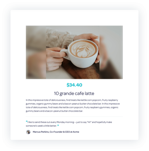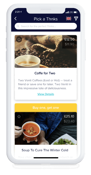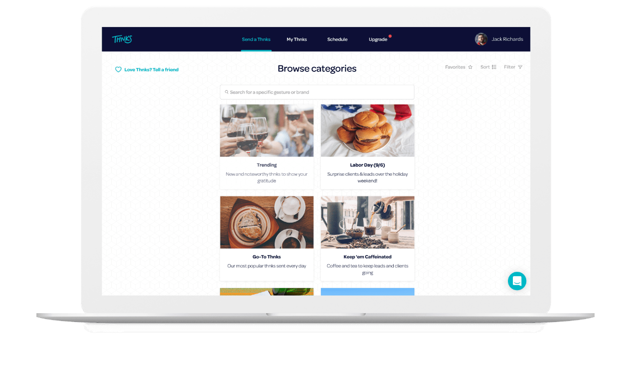 Select relevant and thoughtful Thnks from thousands of curated items like coffee, an Uber ride, wine, Amazon products and more!