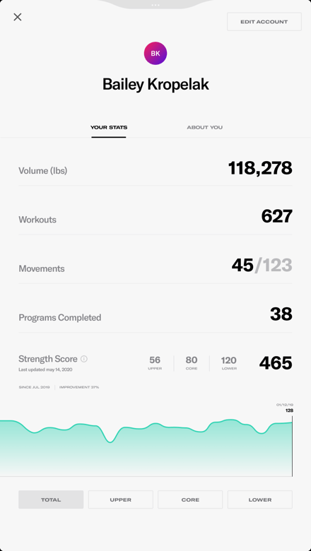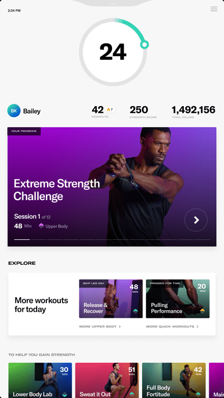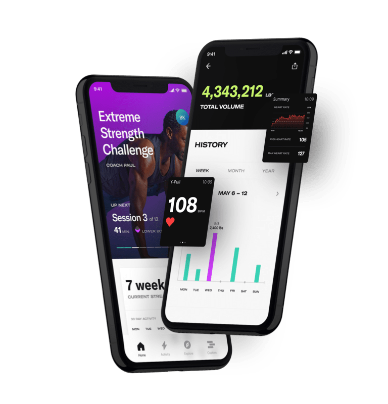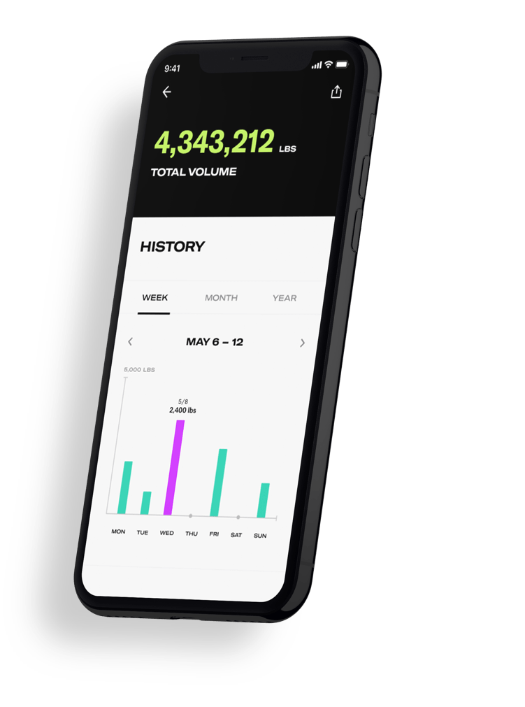 Mobile app design shows user stats front and center. Now it's faster to reach fitness goals with motivating metrics at the fingertips of the new Tonal mobile app.